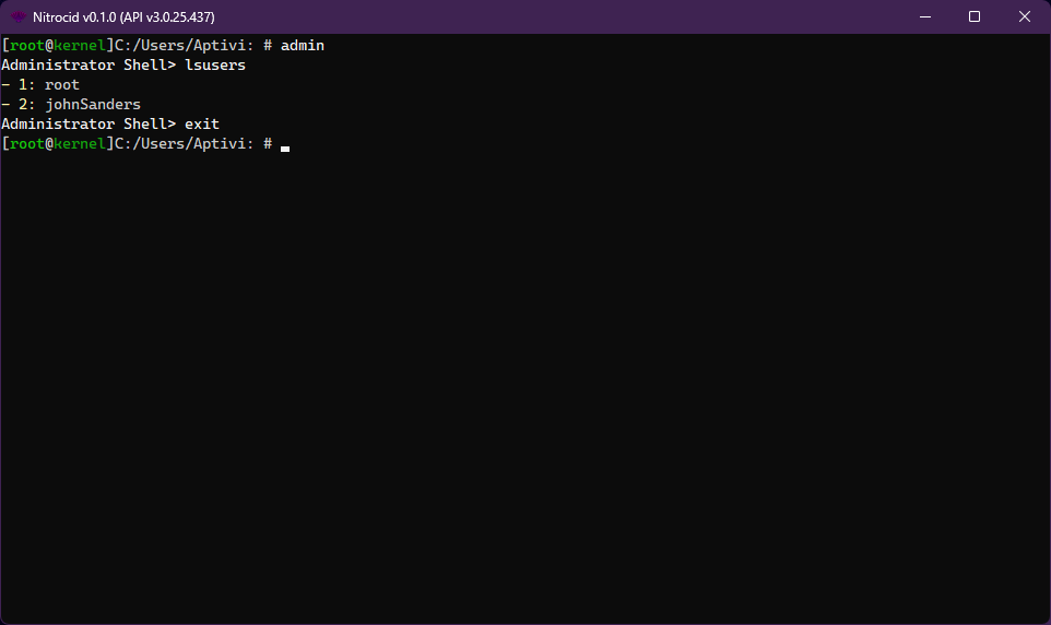 The same thing can be simulated in Nitrocid KS. To add a new user account, follow these steps: