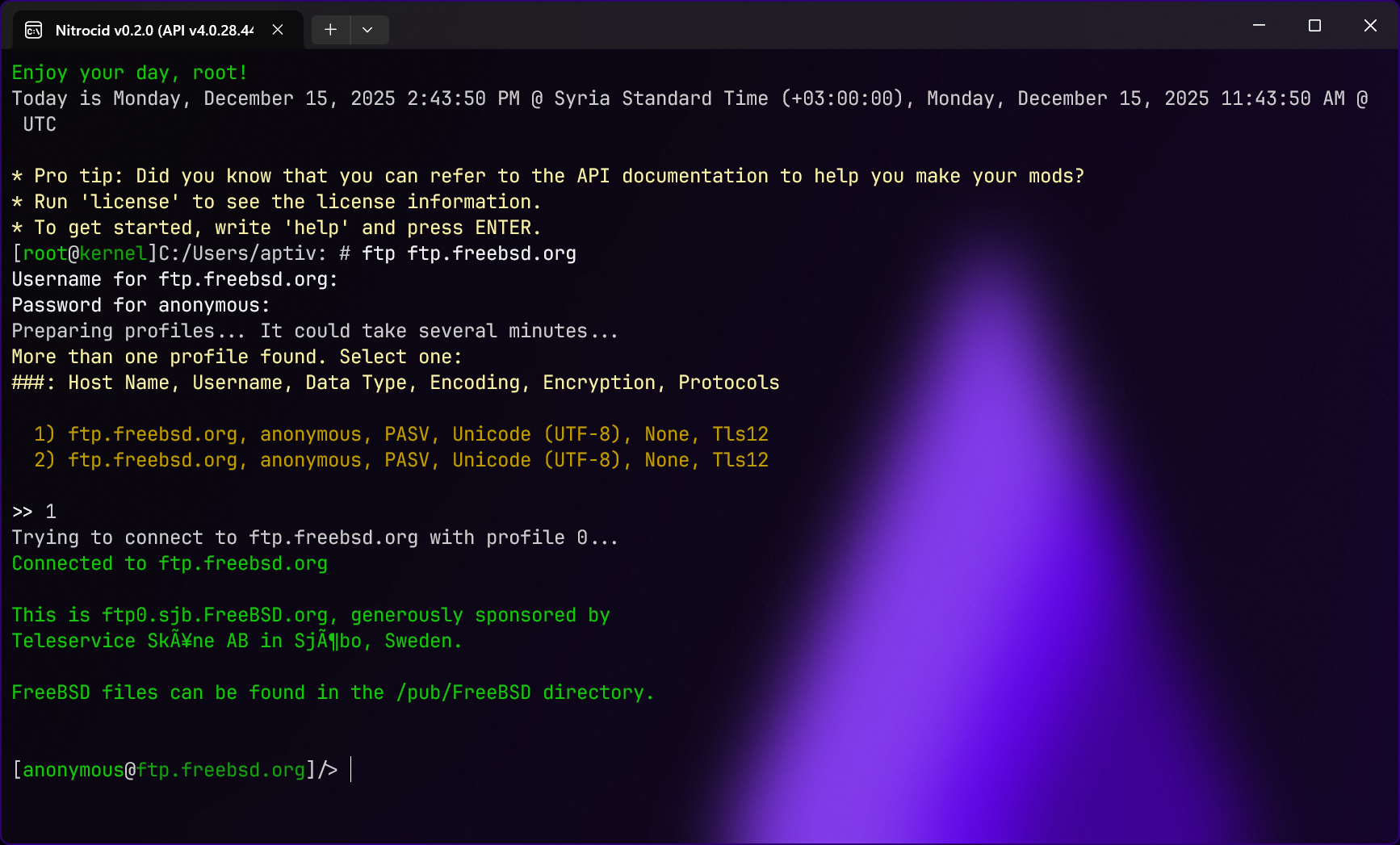 Connecting to FTP inside the FTP shell