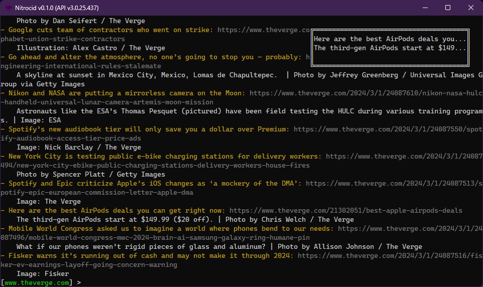 If you passed the -tui switch, it'll open the interactive TUI to your favorite RSS feed URL listing all your articles. Here are the controls:
