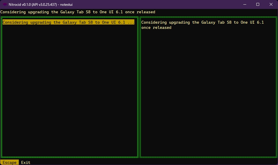You can also interactively view all your notes using the notestui command so that you can read all your notes with more comfort, using the built-in interactive TUI features provided by Terminaux.
