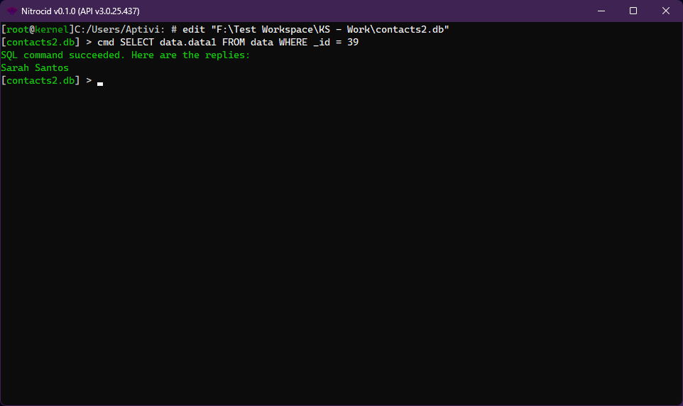 The SQL Shell allows you to execute any SQL command to a connected database file. It supports databases which are created by SQLite, MySQL, and their derivatives.