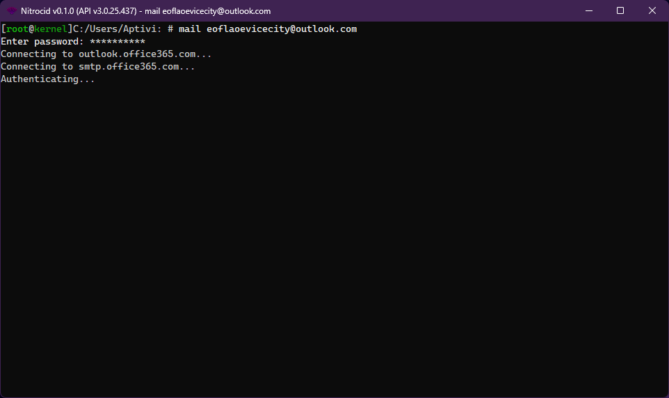 mail <address>command to provide the credentials neededWait for a few seconds while your e-mail is being signed in
