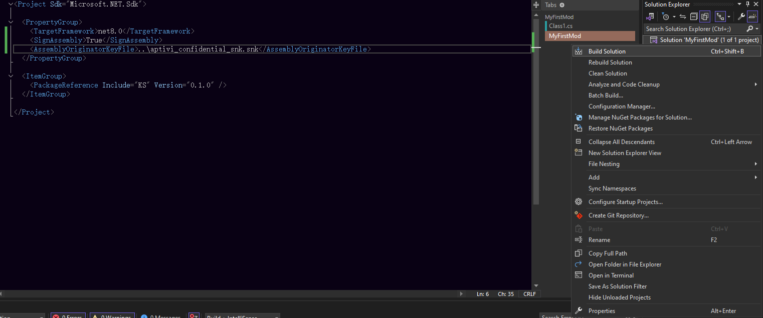 Now, implement everything as you wish. Once you're done, follow the steps on how to create a strong name signing key and sign your mod. Then, click on the