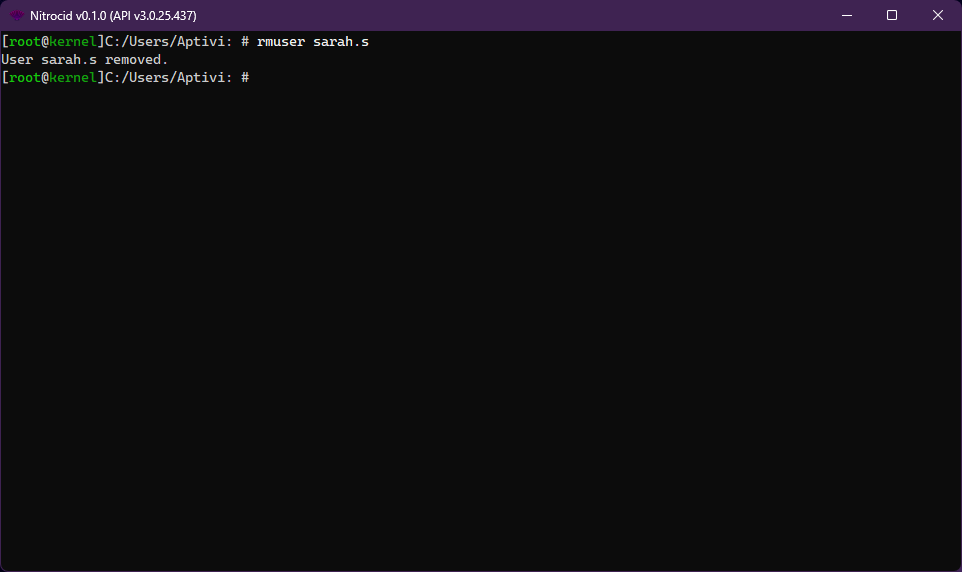 The same thing can be simulated in Nitrocid KS. To add a new user account, follow these steps: