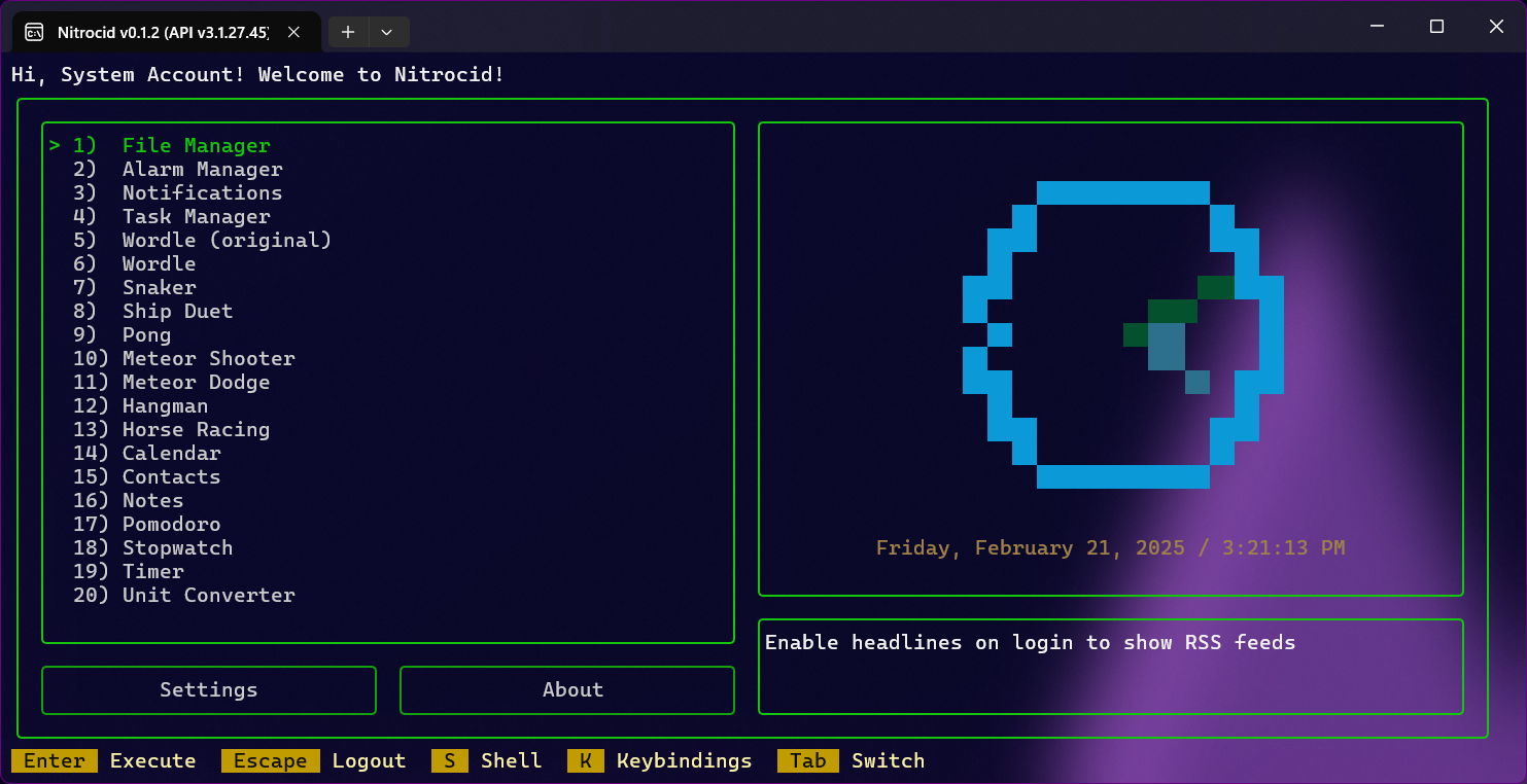 If you're here wondering what is Nitrocid KS, then you're at the right place! Nitrocid KS is a kernel simulator application that simulates not only the kernel, but also a fully-functional textual operating system that allows you to do various tasks, such as file management, use the Internet to download and upload things from/to the websites, and so on.