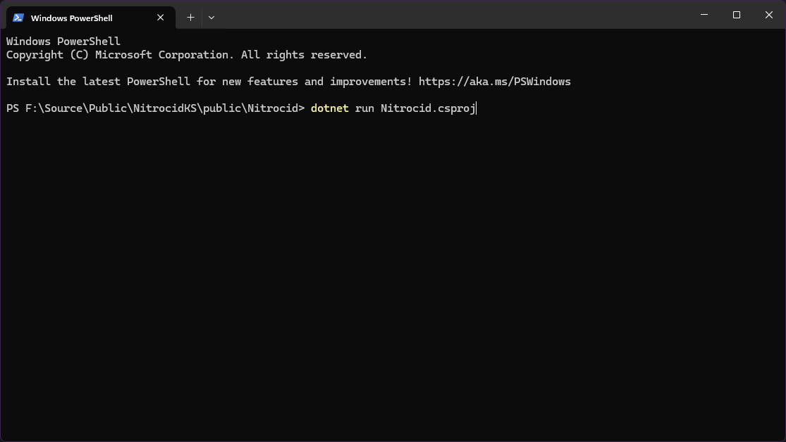 dotnet runon theNitrocid.csprojfile like so: