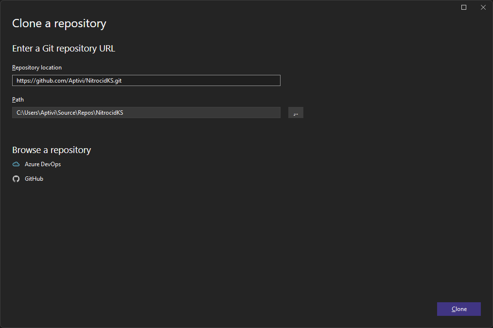 git clone https://github.com/Aptivi/NitrocidKS.gitNavigate to the cloned repository,
