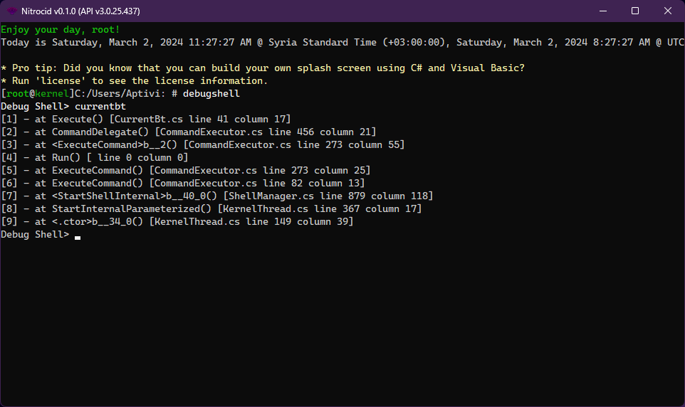 The debug shell allows you to diagnose the kernel in depth. The following commands are available in the below page: