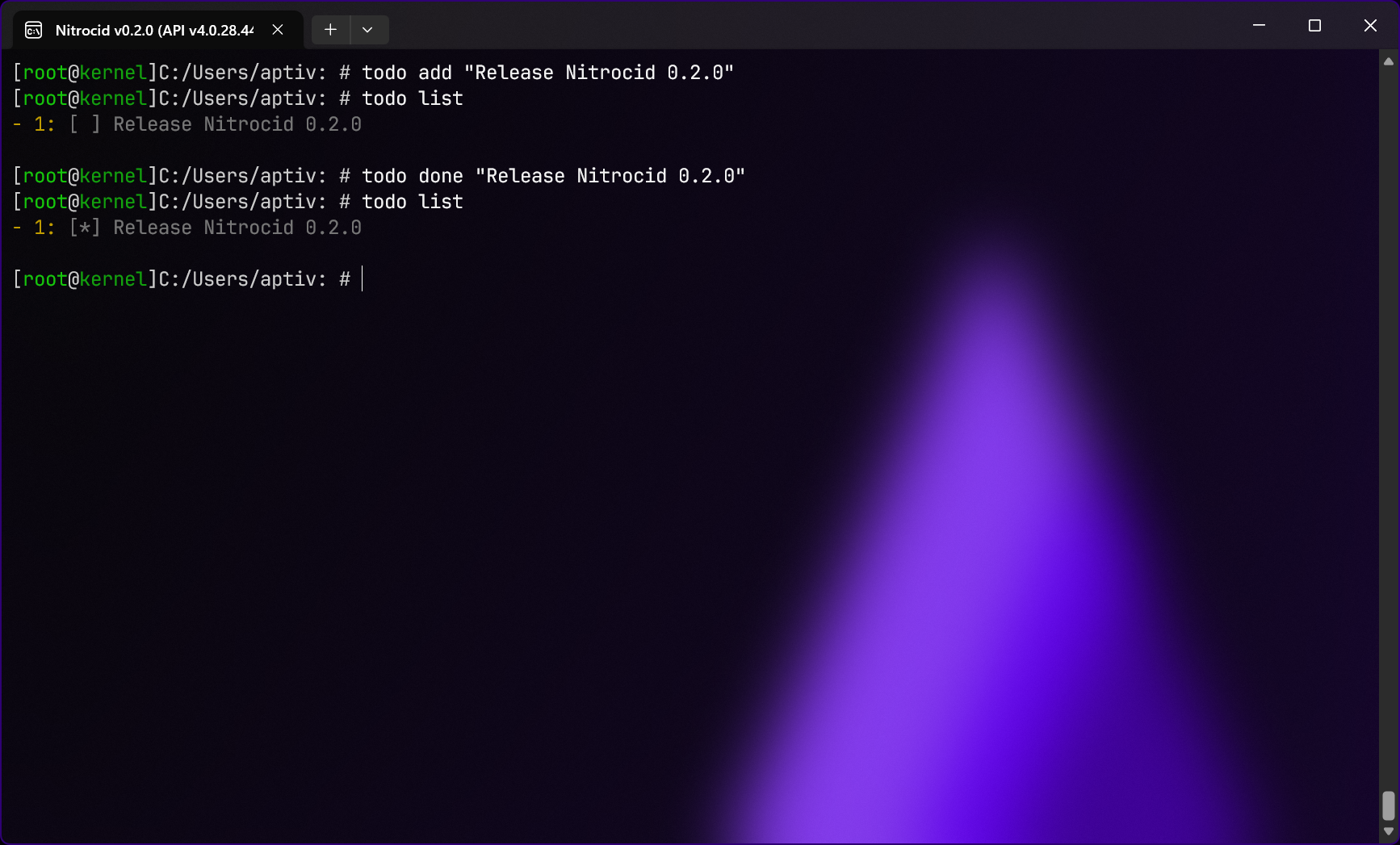 Nitrocid provides you with a single command, todo, that allows you to do the following: