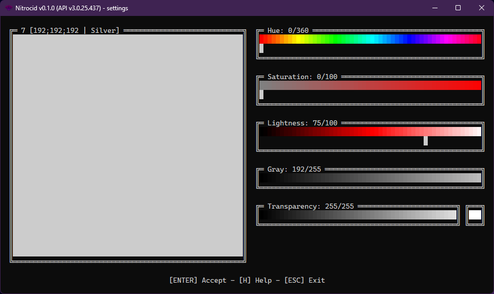 Scroll down in this page to learn more about Nitrocid-specific features. For the general color tools, you may consult the Terminaux manual: