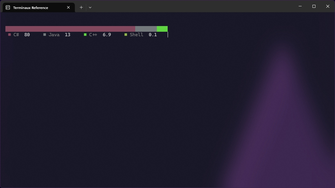 Pie charts visualize data, like all other data charts, but in a pie instead of the usual bars. It uses the values to calculate the arc angles of all elements to then display the whole pie to the console.
