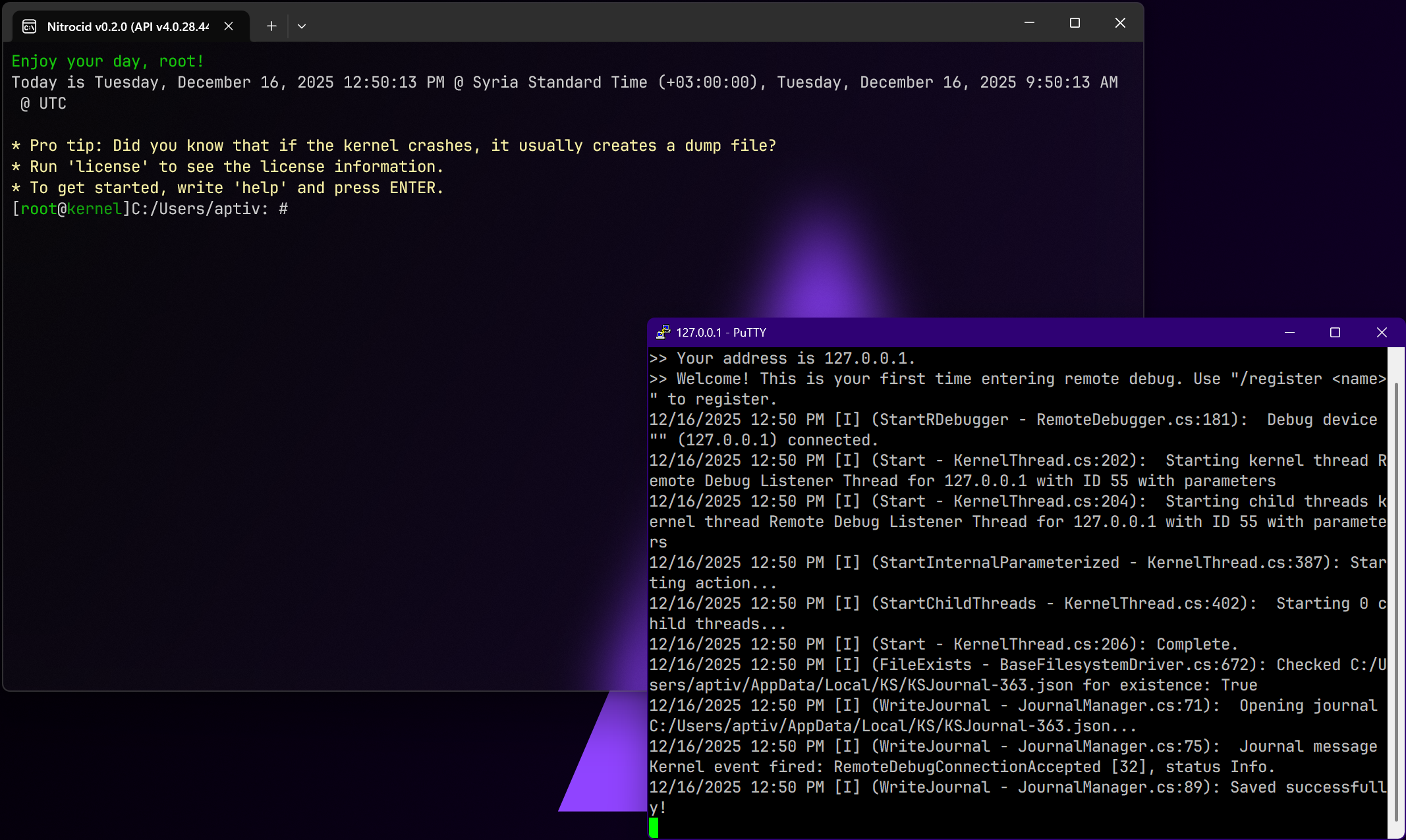 This way of debugging is only available if you have Visual Studio installed. If you have the source code of the kernel cloned from our GitHub, you can attach the Nitrocid KS process to the debugger. Here's how, assuming that Nitrocid KS is already open: