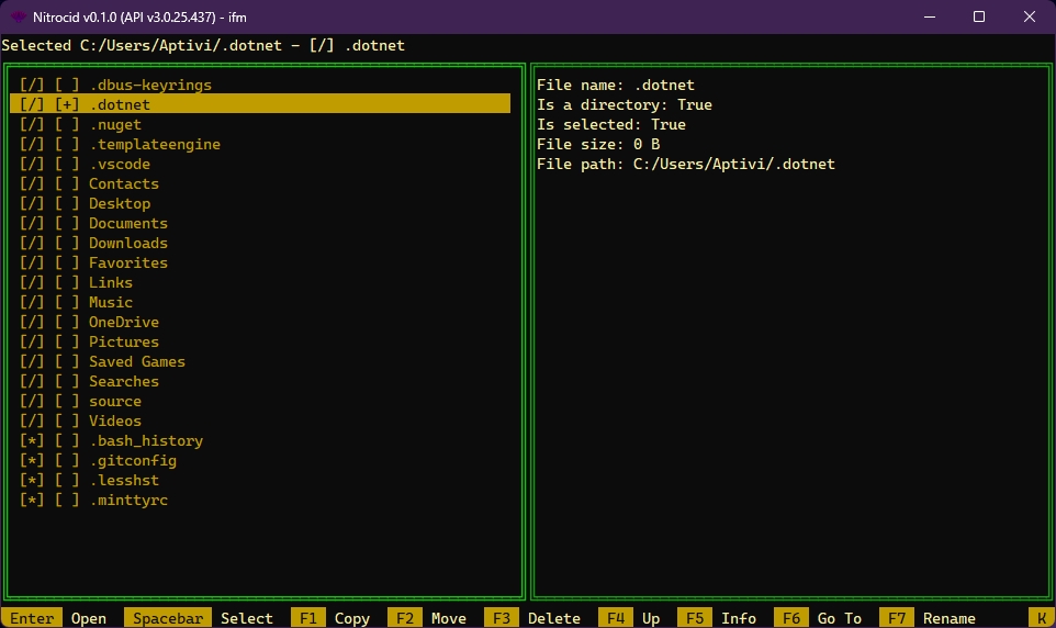 When the selector is open, you can do almost all the things, just like in the normal file management TUI, but with some of the features removed, such as copying and moving to the secondary pane.