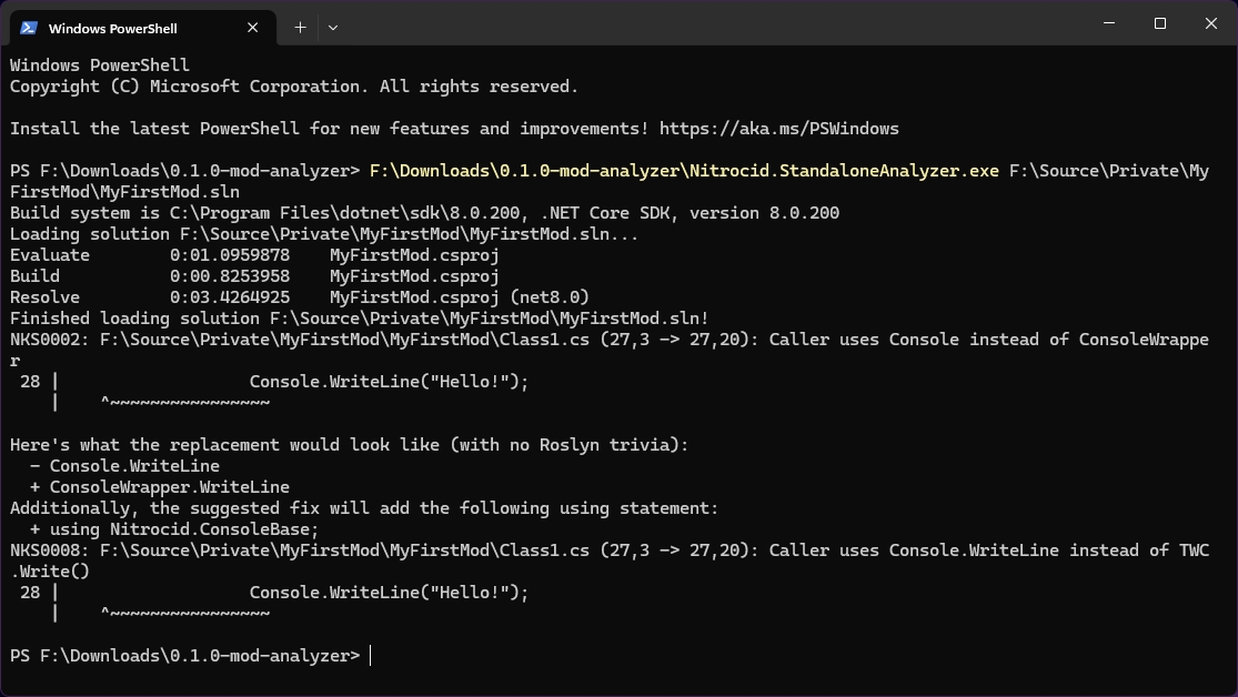 dotnet Nitrocid.StandaloneAnalyzer.dll path/to/mod.sln