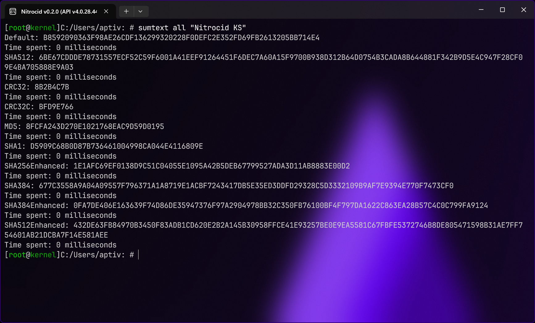In the Encryption class found in the Nitrocid.Drivers.Encryption namespace, you can access the hashing tools to give your mods ability to use the current encryption driver to encrypt your files and your texts.