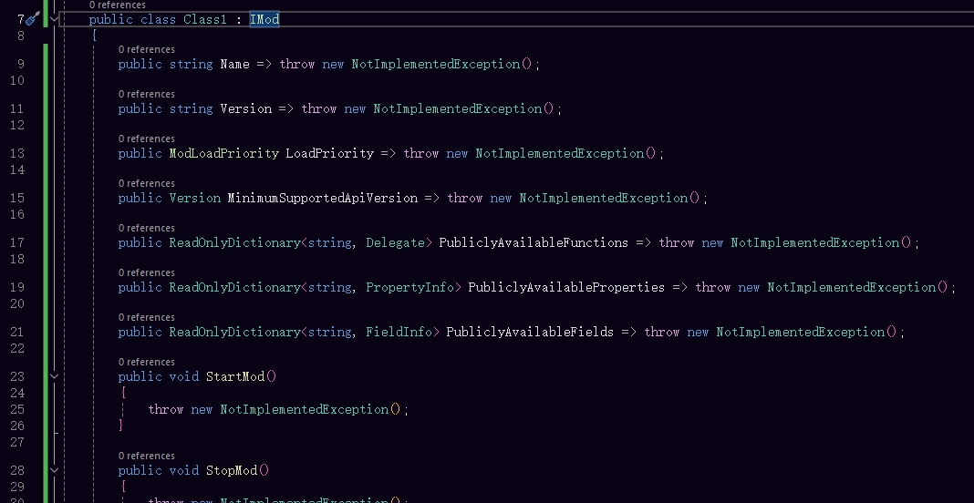 : IModand import the required namespaceby using Nitrocid.Modifications;. You should see errors indicating that you have to implement the methods.