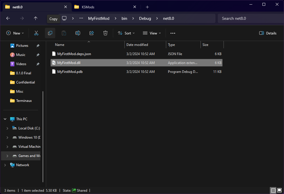 .dllfile toKSModsunder the%localappdata%/KSfolder.