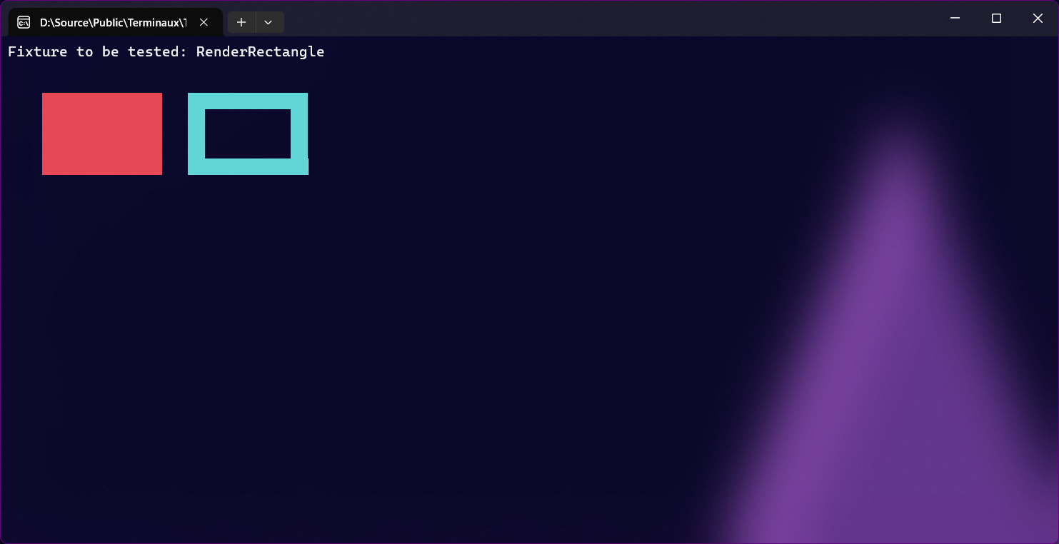 var rect2 = new Rectangle(7, 5, 21, 2, false, ConsoleColors.Aqua);