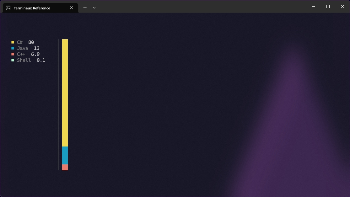Pie charts visualize data, like all other data charts, but in a pie instead of the usual bars. It uses the values to calculate the arc angles of all elements to then display the whole pie to the console.
