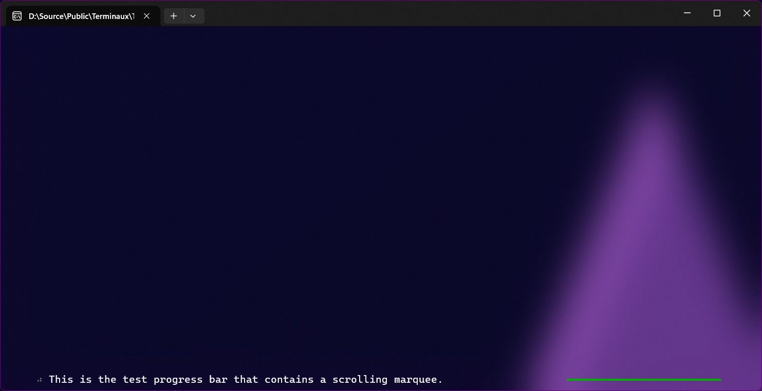"This is the test progress bar that contains a scrolling marquee.", 0, 100)